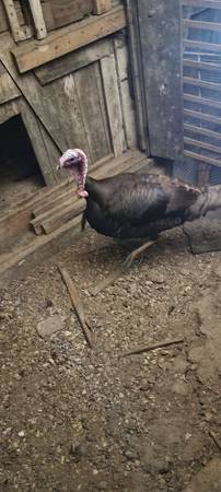 I have 2 charming young turkey toms available. These are a special cross between the Chocolate and Royal Palm breeds, making them a unique addition to any flock. They are healthy, active, and ready for a new home where they can thrive and grow.