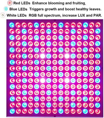 Classical Full Spectrum - Compact grow light that puts out the needed light, includes 163pcs (620-660nm) +58pcs blue LEDs(450-460nm) +4pcs white LEDs (6500k), which is good for all kinds of indoor plants seeding growing and flowering at all growth stages.