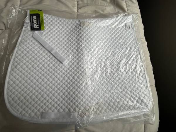New Roma miniquilt dressage pad, full size, white, still in package, 25" spine, 21" drop, new condition, $25.00 cash only.