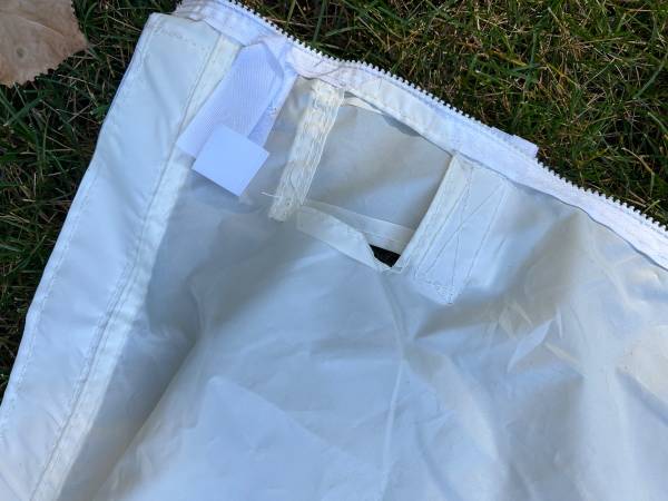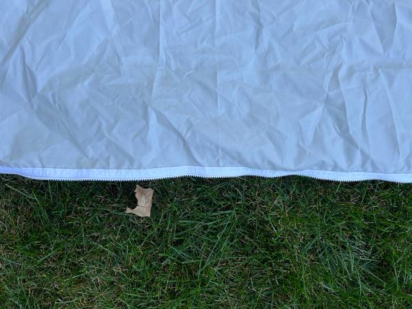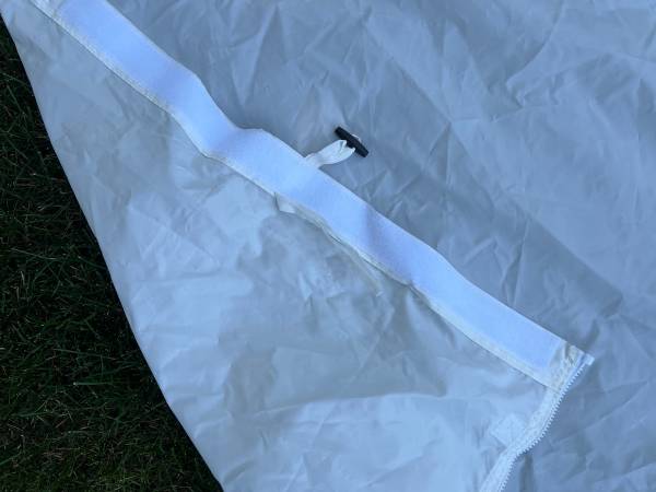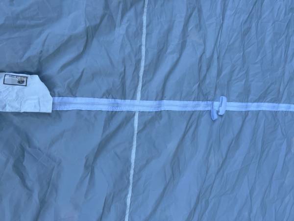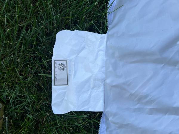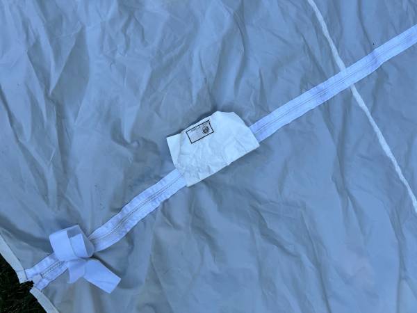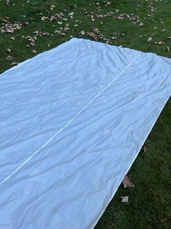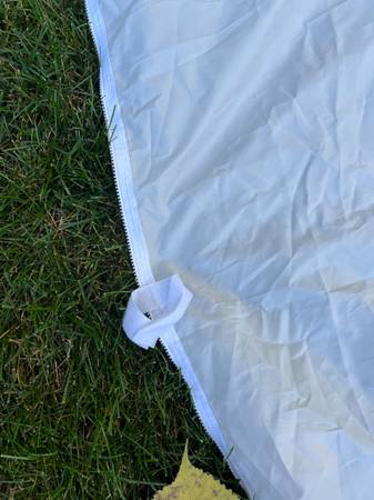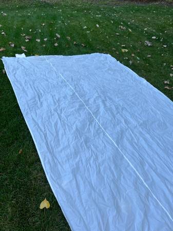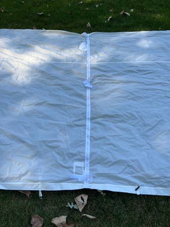 We are preparing to move to warmer and less taxed climes. I no longer need my tent and just located these side panels for an EZ Up tent. There are 2 panels. They are attached by a zipper and the edges have a zipper as well. They have been used and there are some dirt on them. There are some Velcro strips for attachment. Size of each panel is about 9 feet 9" x 6 feet 9". They are difficult to measure as large as they are. I did my best.