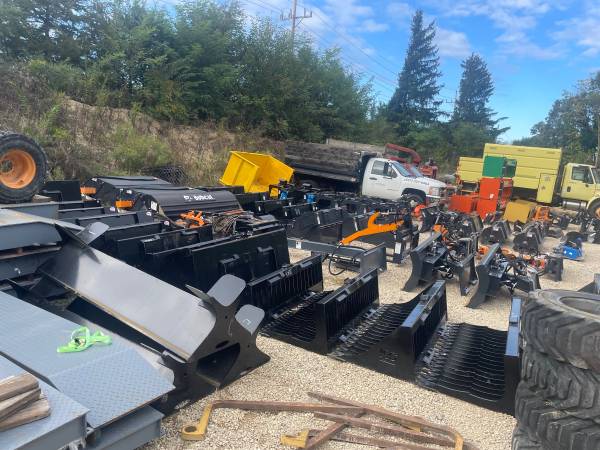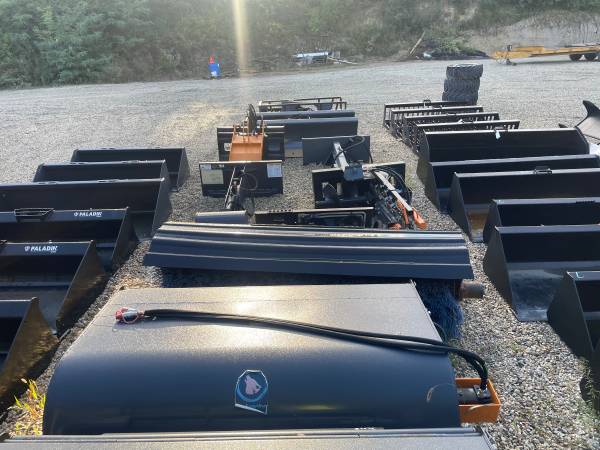 New mini excavator auger post hole digger 12 inch auger 3.5 inch bucket pin hole gauge This fits about 1 ton to 1.5 ton machine Skid steer attachments and implements also available Call Brian