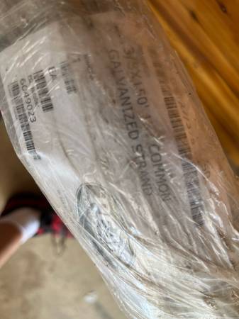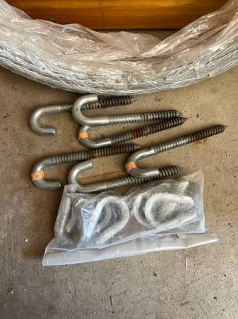 Here’s an unopened 150’ coil of 3/8” galvanized cable along with 3 sets of 7” J-hooks. The hooks were installed for about a month but then the tree declined so the cable was never used.