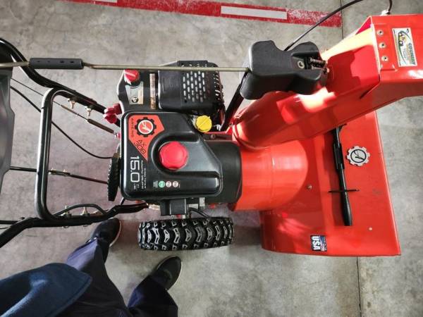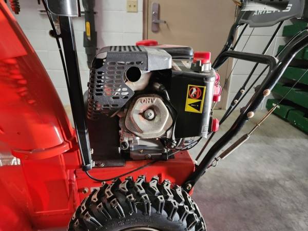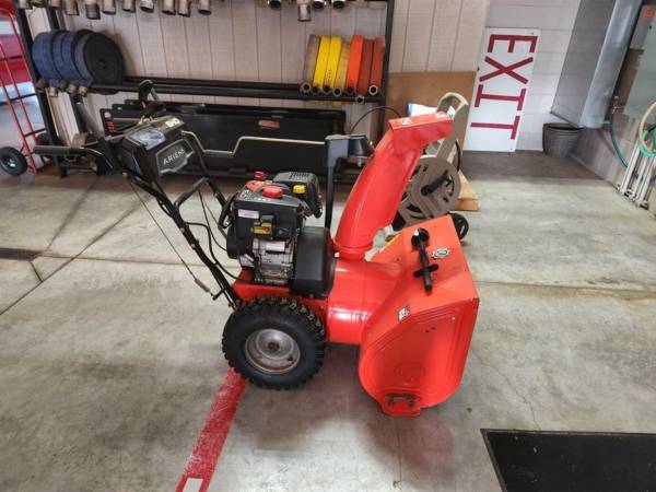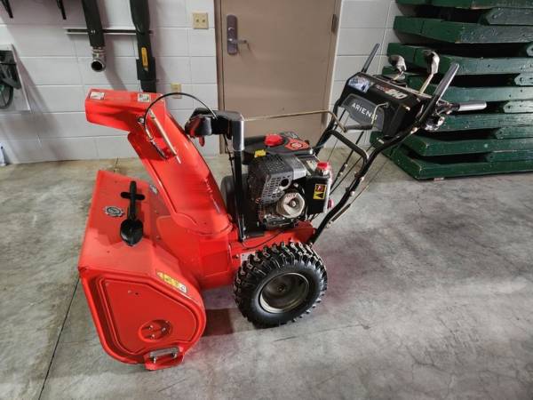 Ariens Deluxe 28 SHO snowblower in excellent condition. One owner. Fire department maintained. Starts easily and runs strong. 28 inch clearing width with the Super High Output 306cc Ariens AX engine. Electric start. Headlight works. All controls feel solid. Auger and impeller are straight with no bends or damage. Tires have deep tread and hold air.