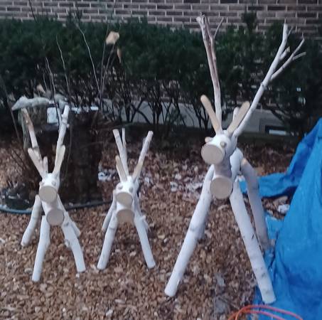 3 Birchwood deer made this year. Use for indoor or outdoor use. The taller deer is $40 and 50 inches high with a 16 Inch antler spread, and the two smaller ones are $30 each and are 30 inches high. Near Route 60 and Peterson Road in unincorporated Grayslake.