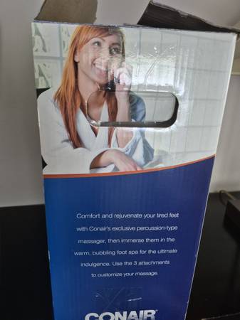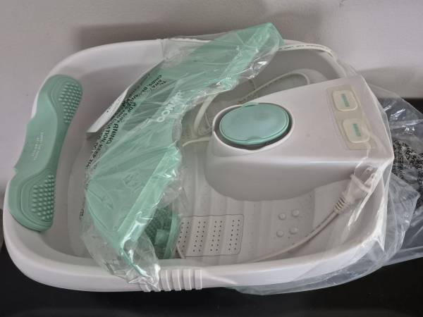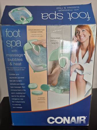 Foot Spa massage, bubbles and heat. Comes with 3 attachments to customize your massage, and extra large platform for large feet. Easy toe-touch control. Please refer pictures for more information....