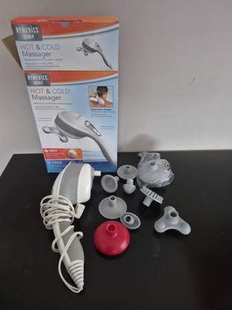 Homedics Thera-P hot and cold massager with 9 attatchments. It is an open box. No missing items. Corded electric. Great for kneading, percussion, vibrating, and more.