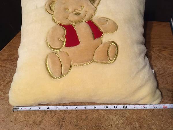 CASH ONLY VERY GOOD CONDITION. BEIGE PILLOW WITH A BEAR IN A RED VEST WITH A GOLD TRIM.