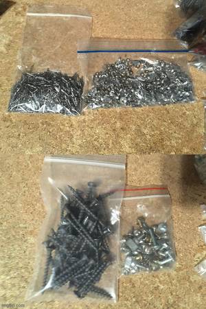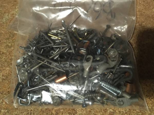 RANDOM LOT A GOOD AMOUNT OF THEM ARE VINTAGE. THEY HAVE BEEN IN THE JARS FOR A LONG TIME. SOME ARE USED WITH VARIOUS CONDITION AND SIZES. COMES IN THE BAGS. ALL THE NAILS AND STUFF WEIGHS JUST SHORT OF 240 OUNCES . JUST A RANDOM LOT OF THINGS THAT WERE SITTING AROUND THE HOUSE FOR A LONG TIME. ADDED SOME PIPE PIECES AND LARGE SCREWS ARE 2 1/2 POUNDS. THE TAPE IS OLD LIKE 15 YEARS OLD OR SO, I DON'T KNOW HOW MUCH OF IT IS USABLE