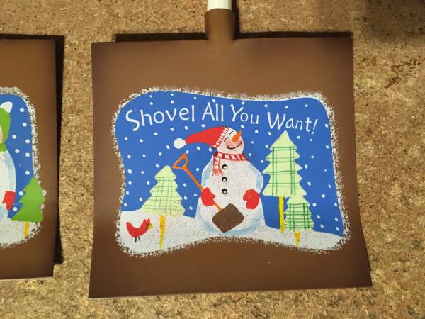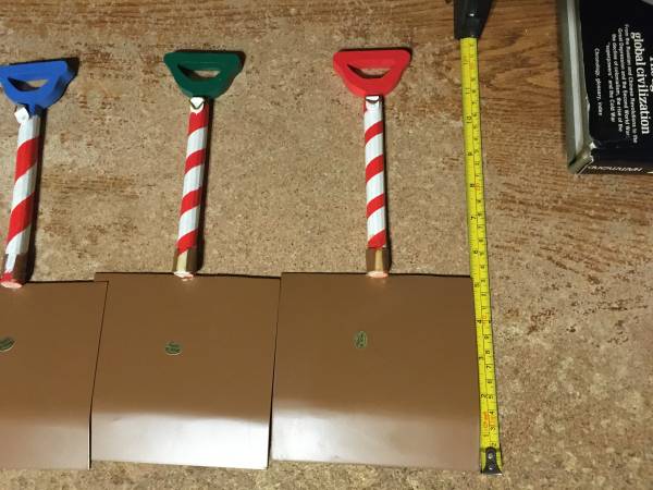 CASH ONLY ALL IN GREAT CONDITION, RED BLUE GREEN HANDLES, WITH CANDY CANE SHAFT. SNOW WARMS OUR HEARTS, SHOVEL ALL YOU WANT, FREE SNOW