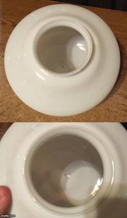 CASH ONLY GOOD CONDITION, LAST TWO PICTURES SHOW IT WITH LIGHT, HAS SOME MARKS/WEAR. IT'S ABOUT 9 INCHES ACROSS AND 6 INCHES TALL, OPENING IS ABOUT 3.75"