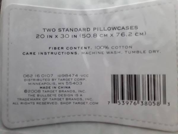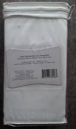 TWO NEW STANDARD WHITE PILLOWCASES from Target Brands - 100% cotton - 250 thread count - 20" x 30" - machine wash and tumble dry - original sealed / unopened plastic case with zipper - new 2 pack - $15