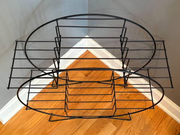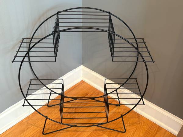 This vintage retro Mid-Century Modern ATOMIC Era round metal wire plant stand is from the 1950's/1960's from my grandmother's home. It was always kept indoors so is in EXCELLENT CONDITION with no breaks or bends on any wire surface, is very sturdy, and all shelves and legs are level. Comes from a clean, smoke- and pet-free home. Own this nostalgic home decor piece that can also be used to display books, candles, bowls, sculptures, etc.