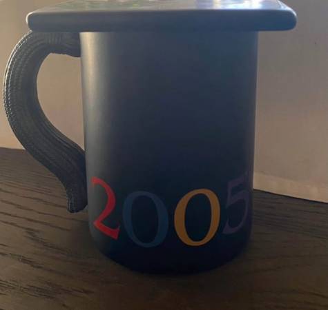 Original Hallmark ceramic mug from 2005 with matching graduation cap-style lid.