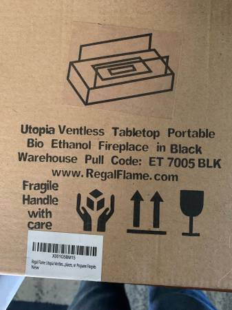 Utopia Ventless Tabletop Portable Bio Ethanol Fireplace in Black with one bottle of fuel.