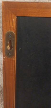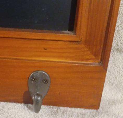 Magnetic chalkboard with 3 keyhooks, antique pinewood frame, 3 metal hooks, and 2 slots on back to hang on wall. Excellent condition used as décor. 16 inches wide by 15 inches high by 3/4 inches thick. Near Fairfield Road and Chardon Road in Grayslake.