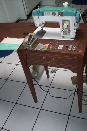 White--Zig Zag-Sewing Machine with Cabinet + Lesson