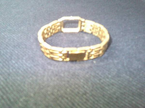 For a smaller wrist. Inside diameter is approximately 2 inches. The finish is gold plating over base metal. Still a very strong clasp. Over all weight has some heft, not fragile at any point. Better...
