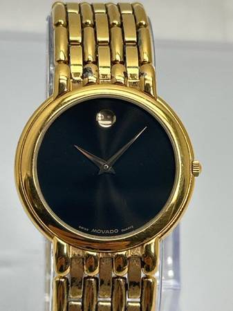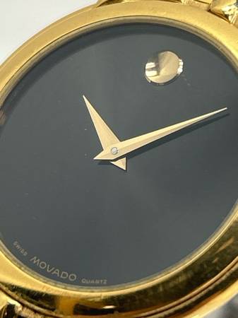 Fast, fair, insured shipping (shipping may reflect insurance cost); adult signature on delivery for high-value items. 30-day returns. Packed right. Local pickup in Naperville by appointment. International available via eBay’s program; duties/taxes are the buyer’s responsibility. Movado 88.19.865 80-19-865 Museum Classic black dial Swiss quartz two tone gold stainless steel bracelet grains of rice 32mm unisex dress watch