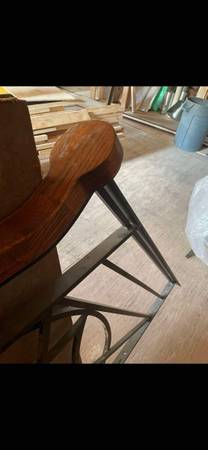 Wrought iron stair railing section with Oak cap. $250 cash only please. See pic for measurements Thanks!