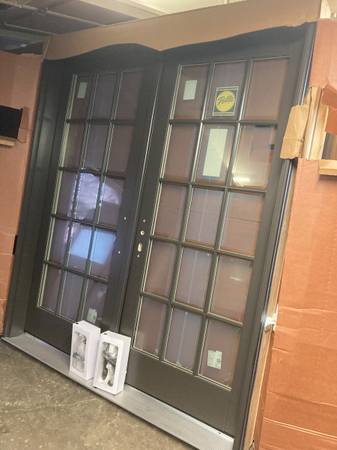 New Pella double right inswing door , both doors open with the right one primary , brown aluminum exterior, pre-finished white interior , grids are external , all locks and matching handles included , 71 1/4 by 81 1/2 by 6 inch jamb . Asking $3250 , less than half of retail .