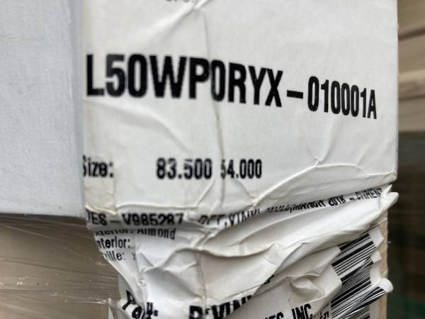 New Pella 250 series window , vinyl , almond , fixed ( dose not open ) , have nail flanges , 83 by 54 . Asking $550