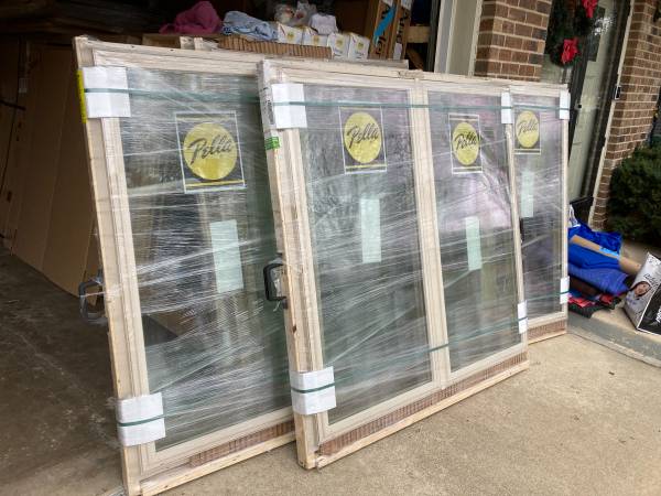 New Pella 250 series windows , vinyl , almond , fixed , have nail flanges , 3 available , 55 by 53 1/2 . Each at $350