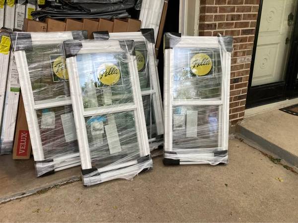 New Pella 250 series windows , vinyl , hide away rolling screen , no nail flange , double hung , 23 1/2 by 45 1/2 . Asking $210 each , 4 windows available