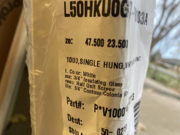 New Pella windows , vinyl , single-hung , 47 1/2 by 23 1/2 . All for $465