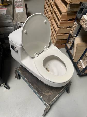 Salvaged one piece round toilet. Low profile 1.6 gallon Eljer USA White color Pick up in Bensenville. $50 cash only please.