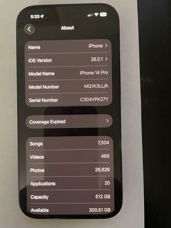 Like new iPhone 14 pro with 512Gb. Not a mark or scratch on the phone. Battery health 88%. Including Otter box case. No box, charger or cable.