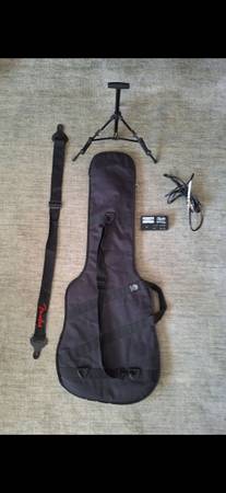 Accessories include a fender strap, gig bag, fender stand, a chromatic tuner, and guitar cable.