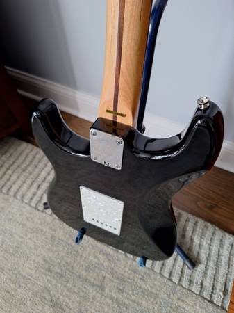 Excellent value and performance and a solid platform for players or modders. Very good condition! New Ernie Ball 9s strings. New trem arm. Pickguard and back plate still have original clear plastic film on it. Headstock still has manufacturers serial number sticker (many times these fall off) A few lacquer dings have been touched up, but otherwise amazingly clean.