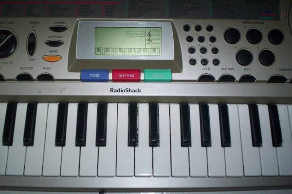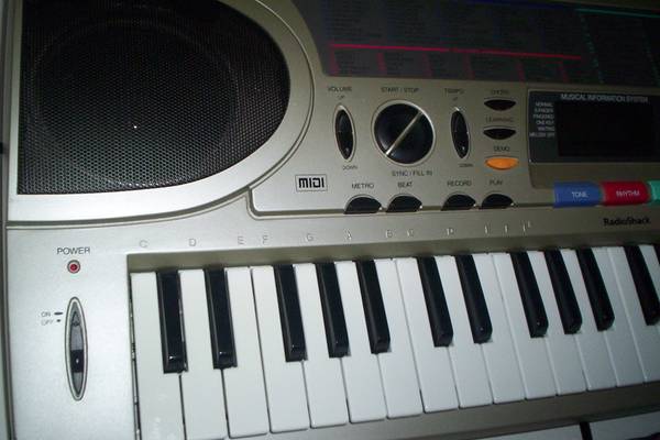 MIDI Keyboard with Mini-size Keys+Demo Radio Shack MD-501 Power Supply Included Takes 6 "C" sized Batteries Plays --50 Songs --30 Rhythms --50 Tones Measures- 27" Wide x 10" Deep x 3" High A...