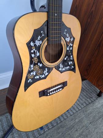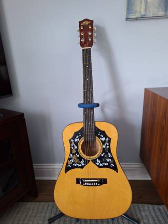This guitar is well-loved but in good condition considering its age, with minor wear to finish consistent with a vintage guitar. New strings and pegs.
