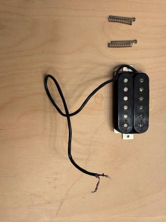 Pair of early-1980s Seymour Duncan hand-wound, pre-logo humbuckers. Mismatched models, but they’ve been together for decades and work extremely well as a set.