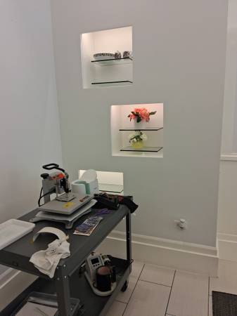 Former Benefit Cosmetics location features large front window with display area, open retail space, accessible bathroom and small storage/utility room. Just a block away from CTA/Metra/City parking garage.
