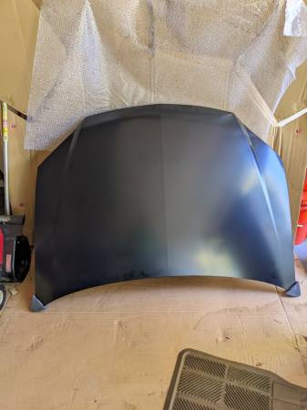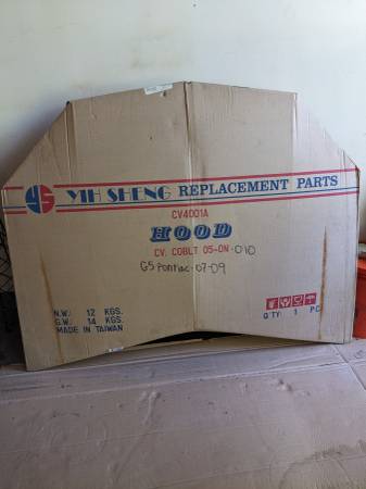 Brand new hood for a Chevy Cobalt 2005 to 2010 also works with Pontiac G5 brand new no scratches no dents no nothing this is impeccable shape new inbox primer black perfect shape ready to paint your...
