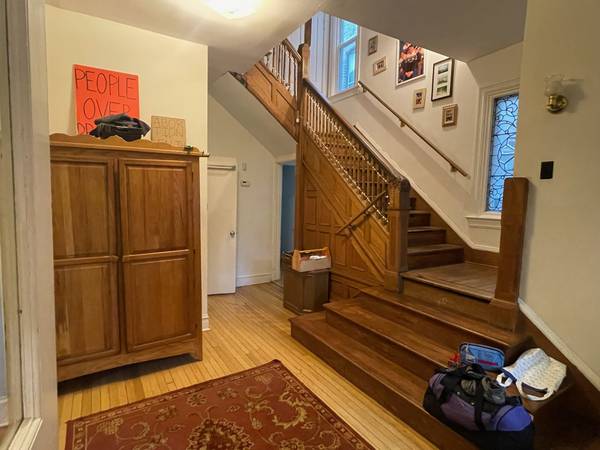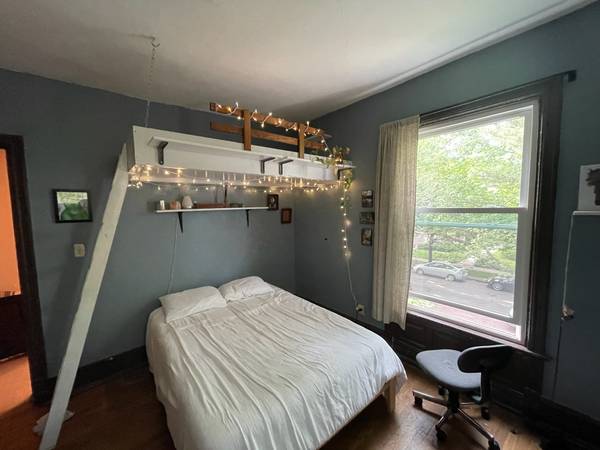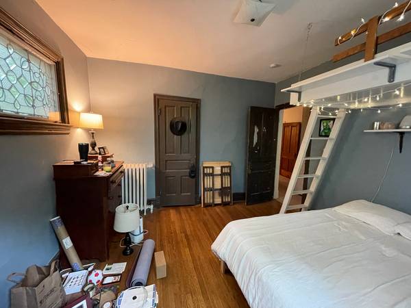 Available bedroom is on the 2nd floor (no elevator); north-facing window, hardwood floor, decent closet. Bed shown in pictures is a double/full-size (and is available for purchase); the loft fits a twin-size mattress. You’d be joining me and 3 others (plus you makes 5), 1 cat, and 1 dog (both friendly). Unfortunately, we cannot welcome any more pets into the house (other than something small that stays in your room). We're looking for someone to sign a 1-year lease with us starting December 1st, with the option to move in early.