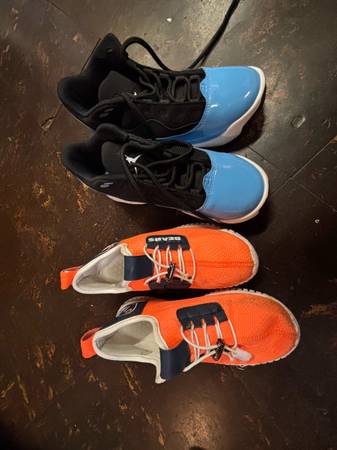 Jordan’s youth 4.5 blue and bears size 5 orange.