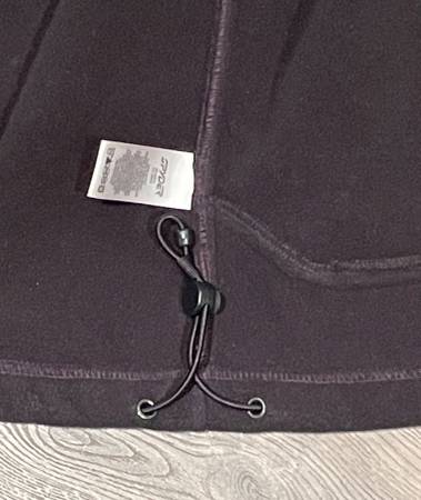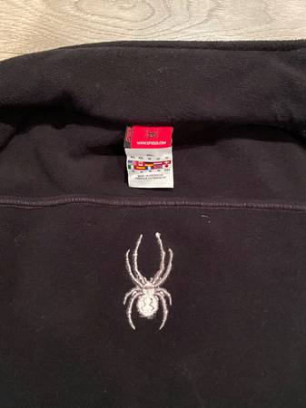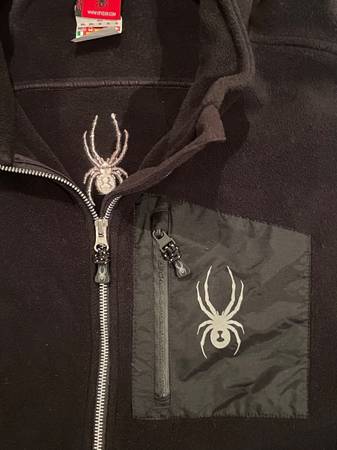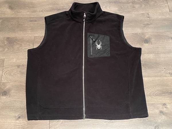 Men's US XXL/EU 56 SPYDER "Bandit" black polar fleece zippered vest to help keep you warm layered underneath a coat, or styling with a shirt underneath during 3 seasons. Features a chest zippered pocket with Spyder logo, and interior bottom waist drawstrings if a tighter fit is desired. Made from light-weight polyester sweater knit bonded to anti-pill fleece that's soft to the touch. The rich black color is darker in person--photos lightened it up. $55 cash only
