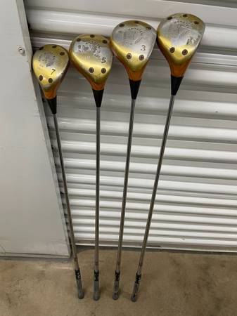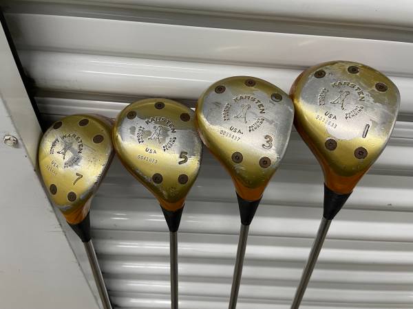 This set has their original KT-M steel shafts. They are in pretty good condition for their age. I see no gouges, deep scratches or dents. They do have a few scuffs from standard use. I'm sure they have been regripped. They can be buffed out to make them look much better.