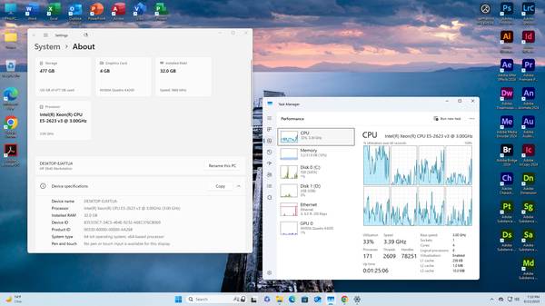 HP Z640 Workstation PC Xeon E5-2623v3 32GB Ram 512GB SSD + 6TB HDD Quadro K4200 W11 Pro