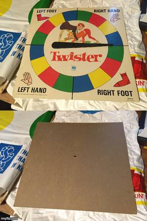 ONE MAT IS BIGGER THEN THE OTHER, MATS HAVE A SOME MARKS ON THEM. SPINNER BOARD IS IN GOOD CONDITION.