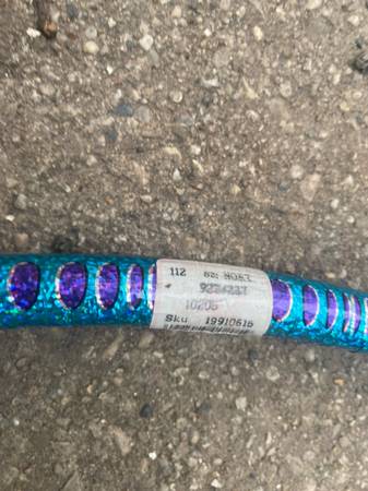Preowned Wave Hoop (#10205) hula hoop in excellent shape. • Shiny blue and purple holographic design • Great for fitness, dancing, or outdoor play • Lightweight plastic, no cracks or damage