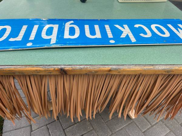 42 inch by 9 inch real Mockingbird Lane street sign. Has some scratches and is not perfectly straight but is still awesome. For anyone having a Munster themed Halloween. 🎃