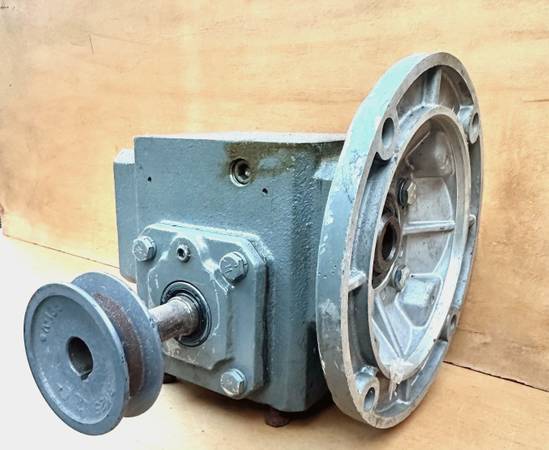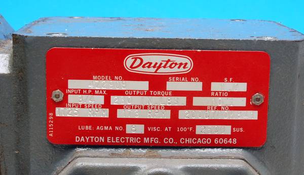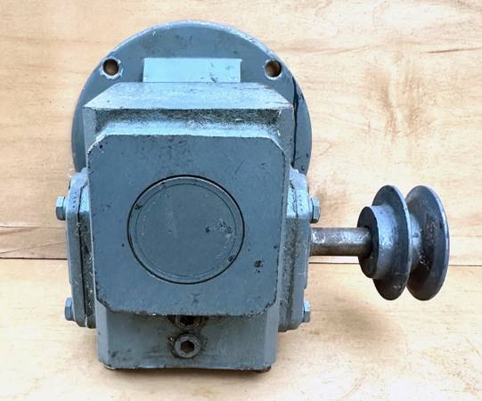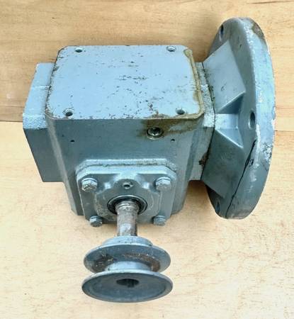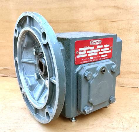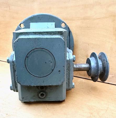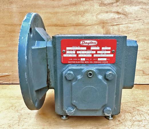 DAYTON 4Z290B Speed Reducer Gearbox. Ratio 10:1. 3/4 HP. Output Torque 230 in. lbs. INPUT speed 1725 RPM. Output speed 173 RPM. This gearbox was used with a pulley to help grind chunks of wax using a meat grinder. It had minimal use and hasn't been used for the last 15 years. I have sold 5 others already and have 2 left. There is a pulley wheel attached . Overall , very good + pre-owned condition. Thanks.