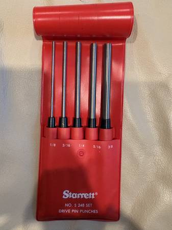 New condition Starrett No S 248 Drive Pin Punches 5-Piece Set 1/8"-3/8" with vinyl case