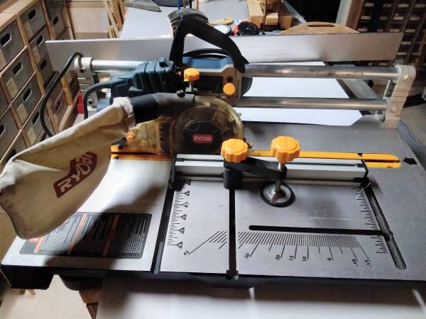 Flooring saw, used twice. Cuts up to 3/4" material, rips and crosscuts, great for working directly on floor, no need to get up and down. Push stick, dust bag and owners manual included. Call George at show contact info