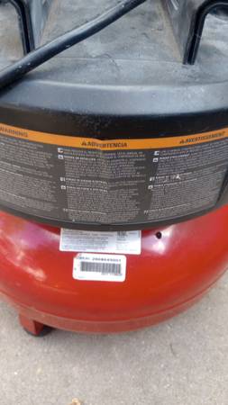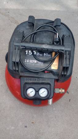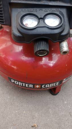 Porter cable 6 gallon pancake compressor, 135 psi. Works good.