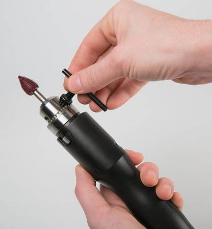 The quality and perception of any piece of work is largely influenced by its finish. Flat surfaces can easily be finished with a smoothing plane or sandpaper. However, concave or convex shapes, inner surfaces of rectangles and irregular shapes are much more difficult. So far, a machine finish was not possible while a hand surface was extremely time-consuming. This gap has been closed by the Swedish manufacturer Kirjes with its integrated sanding and polishing system: it enables a great leap in quality and facilitates working. A sleeve of highly flexible abrasive cloth is fitted on a cylindrical or dome-shaped rubber bulb which is then inflated with a special hand pump through an air valve on the shaft. Such pneumatic drum sanders are very elastic, perfectly conforming to any shape. In addition to sanding sleeves, brush sleeves for polishing are also supplied. They will give your workpiece a polished surface. All inflatable drum sanders are fixed to the drill chuck of a 130 cm flexible shaft. The perfect tool for inner surfaces of carved and turned objects, for hard-to-reach areas, spoons, musical instruments, sculptures, ornaments, wooden toys, jewellery, knife handles etc.